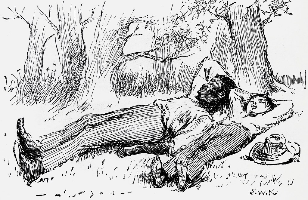 “I got out amongst the drift-wood and then laid down in the bottom of the canoe and let her float. I laid there and had a good rest and a smoke out of my pipe, looking away into the sky, not a cloud in it. The sky looks ever so deep when you lay down on your back in the moonshine; I never knowed it before.”